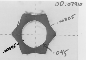 In this second example of where a non-uniform wire coating can be advantageous, our symmetrically coated conductor from earlier has found itself designed into a high abrasion environment and needs to have abrasion wear points on the surface. Such an environment would not be uncommon in many automotive or aerospace wire assemblies. However, due to weight factors and flexibility concerns with these applications, one cannot just arbitrarily increase the coating thickness. Instead, abrasion bumps could be added to the conductor by combining thermoplastic profile extrusion and wire coating processes. A typical thermoplastic extruded profile for this design might look similar to Figure 5.