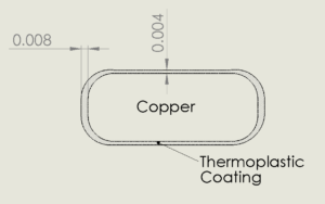 Thankfully, advances in materials science and thermoplastic extrusion technology now allow us to move beyond the classical round, square, and rectangular coatings traditionally described in specifications such as NEMA 1000 and IEC 60317. Atypical coatings, such as those that are non-uniform or non-symmetrical, could open a wide range of possibilities for insulated wire and help catapult existing technologies to the next level. In the examples below, we will briefly look at a few scenarios in which non-uniform wire coatings could have a decisive advantage over classic uniform shapes.