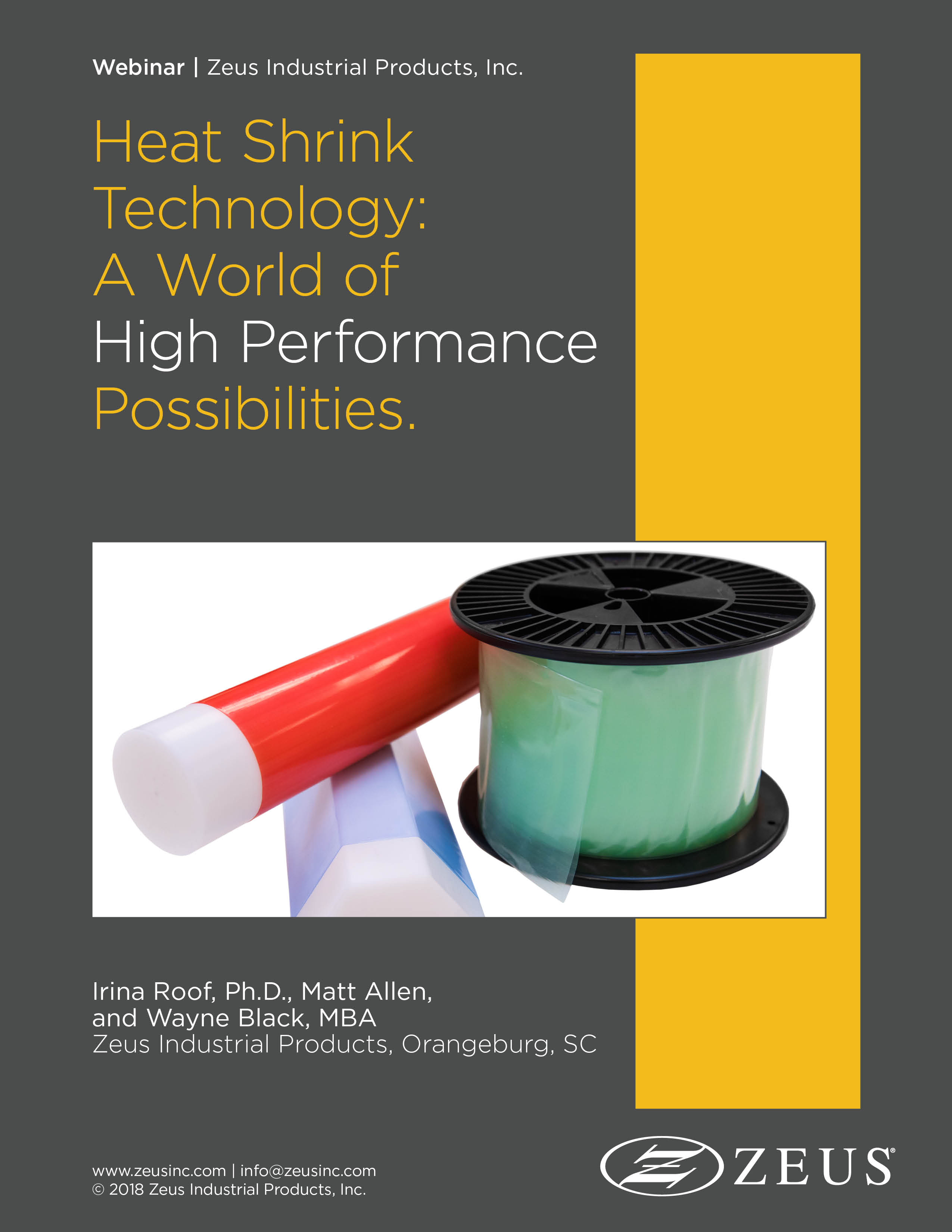 Dr. Irina Roof, Staff Scientist; Matt Allen, Global Market Manager; and Wayne Black, Business Development Manager at Zeus Industrial Products discuss heat shrink material and its diverse properties and performance attributes.